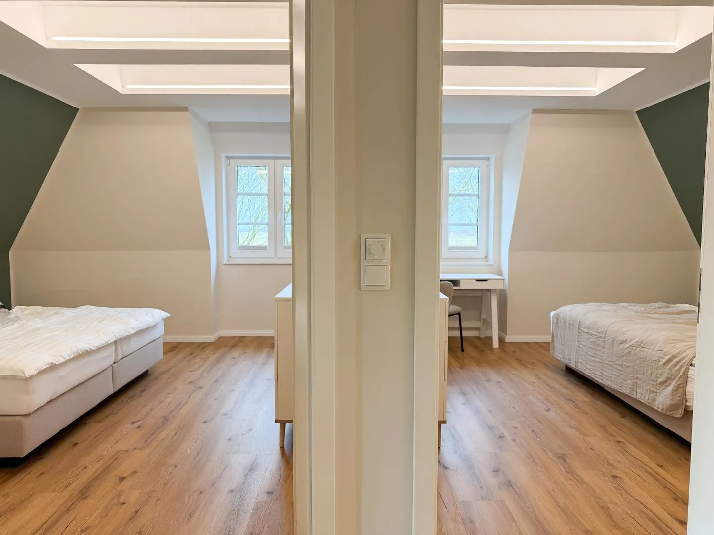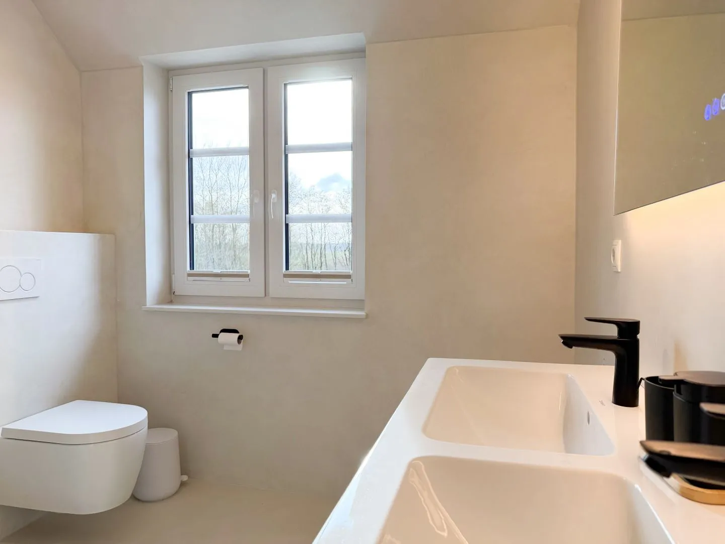 Die beiden Badezimmer mit Duschen sind modern und funktional eingerichtet, sodass der Tag auch bei voller Belegung entspannt beginnen kann. Waschmaschine, Trockner und viele praktische Details sorgen zusätzlich für Komfort – gerade bei längeren Aufenthalten.