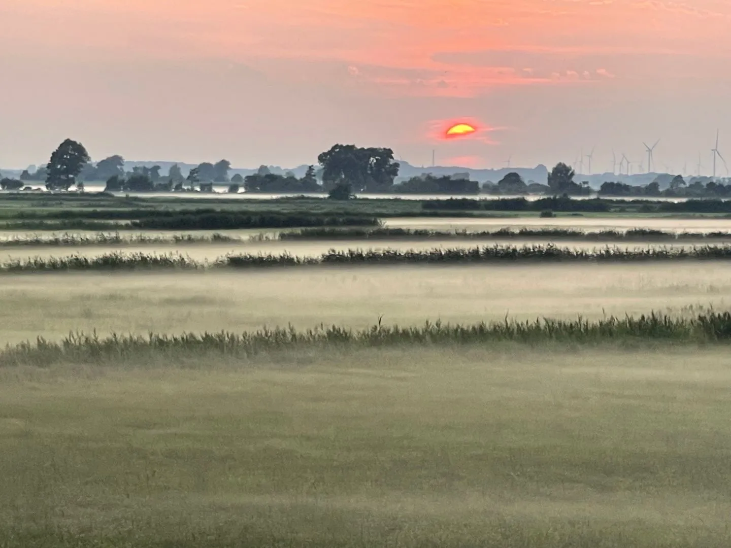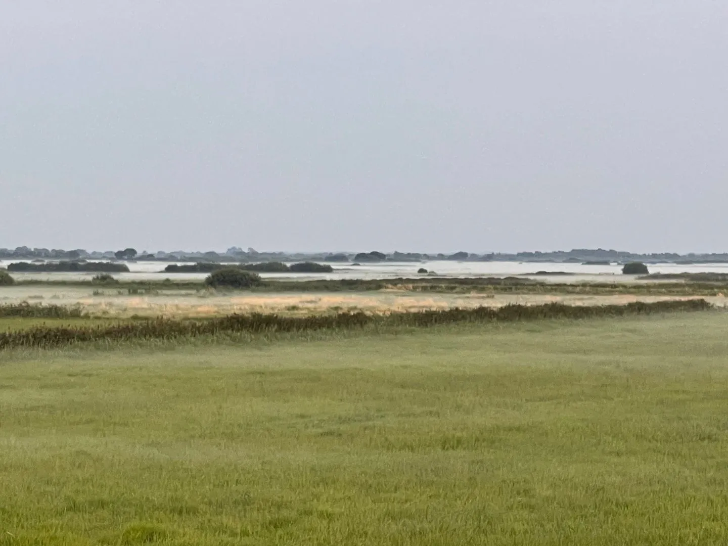 Die Umgebung ist geprägt von kleinen Dörfern, weiten Feldern und viel Wasser.