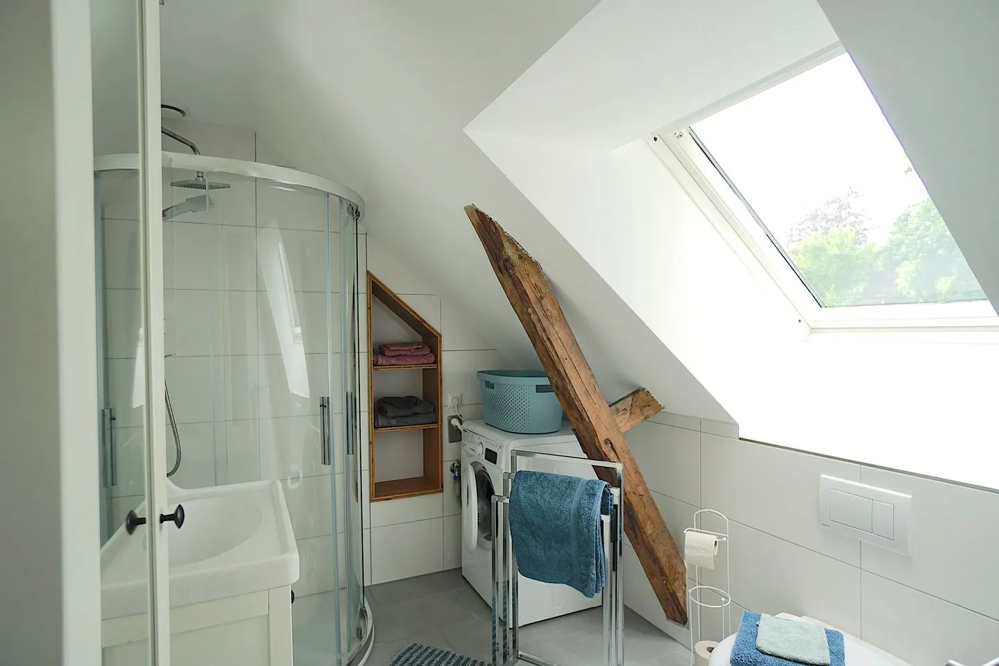 Ein angenehm großes Tageslichtbad bietet auch im sanitären Bereich jeglichen Komfort und auch eine Waschmaschine steht hier zur Verfügung.